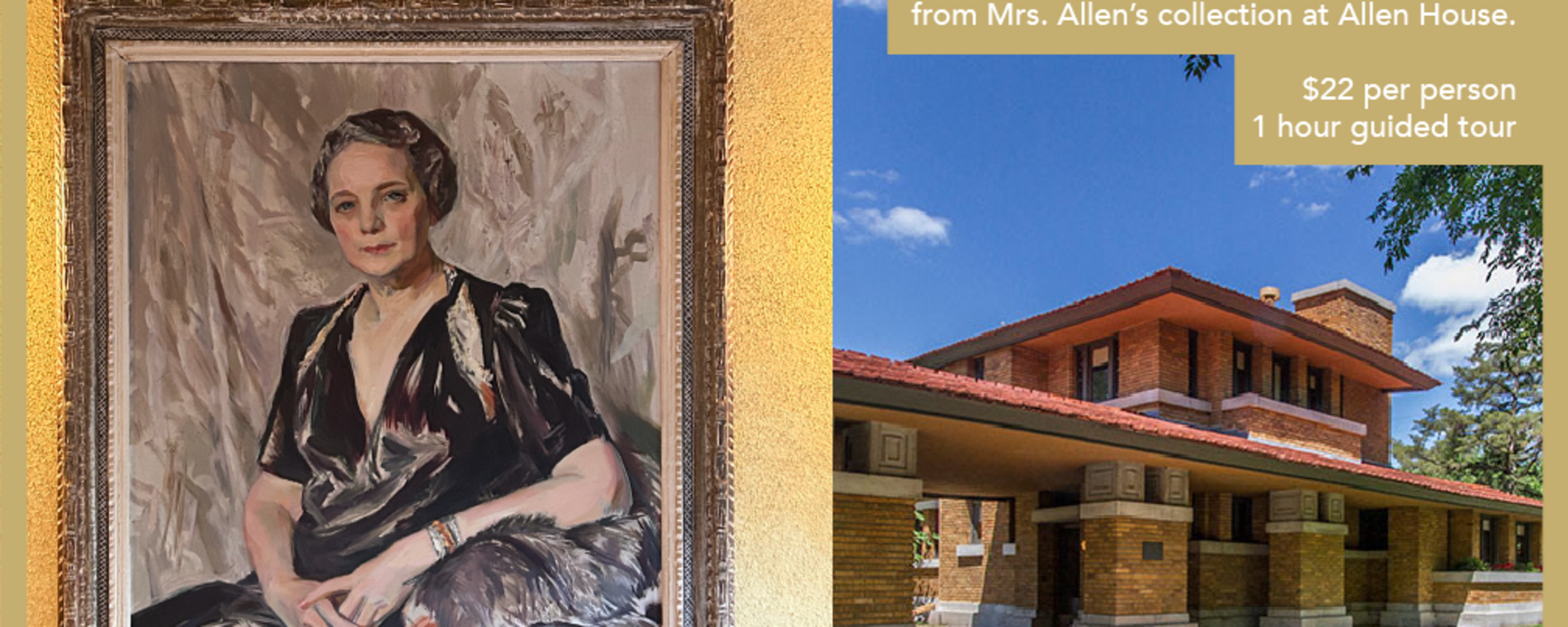 <p>Have you ever wondered about the history behind the artwork inside the Allen House? Or do you have a love for American, European, Japanese, or Kansas artists? Then come experience an in-depth look at examples of Mrs. Elsie Allen’s art collection at Frank Lloyd Wright's Allen House!<br><br>Elsie was a major art collector and advocate in Wichita. She owned over 400 pieces of art at the time of her death. This tour will explore original pieces of art that are exhibited in the home. This tour focus is on the artwork but will also include a “mini-tour” of the home. Tour length is approx. one hour. This is a walking tour throughout the home and stairs must be navigated.<br><br>For a more in-depth tour about the home itself, please consider our Guided Standard Tour or Grand Tour.</p>