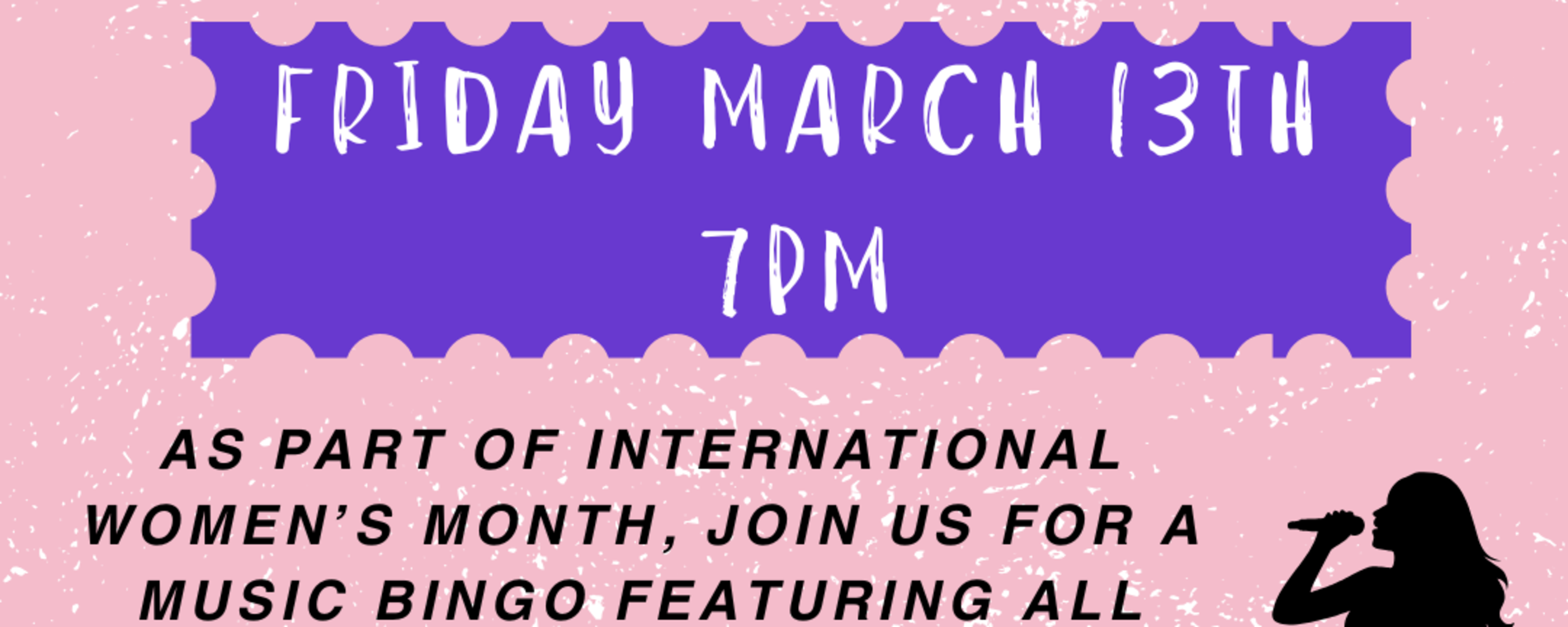 <p>Join us on Friday March 13th at 7 pm for a high-energy Song Bingo celebrating the most iconic women in music! We’ll be playing 30–40 second clips of legendary hits by female powerhouses. If you’ve got the song on your bingo card, mark it off for your chance to win prizes!</p>