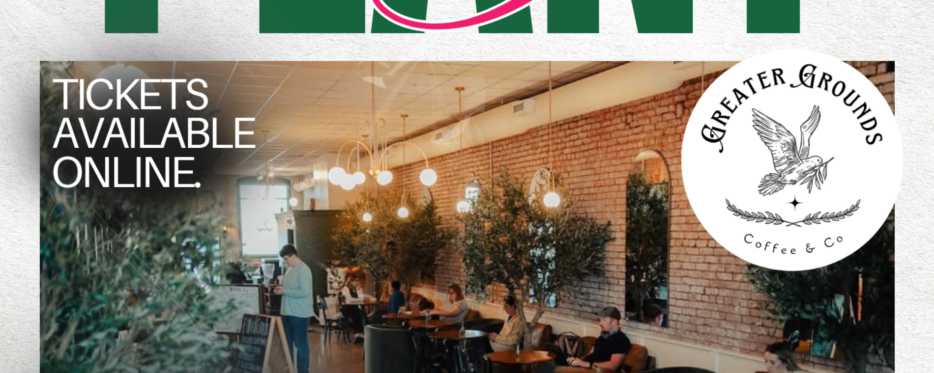 Food, coffee, and cocktails available for purchase through Greater Grounds. Tickets do not include food or drinks.