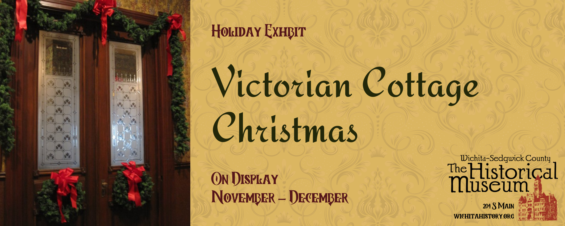 <p>A featured exhibit of the Wichita-Sedgwick County Historical Museum includes “A Wichita Cottage.” This exhibit authentically recreates a typical middle-class Wichita home of the late 19th century, complete with Victorian adornment and the emerging technology that would soon change domestic life and society in general. Seven individual rooms compose this environmental exhibit. Visit and pay a social call on the residents of a Wichita cottage, this 1890 Victorian house is authentically decorated throughout, from the wooden icebox on the back porch to the combination gas–and–electric ceiling light fixture hanging in the parlor.<br><br>Located on the third floor, starting during our annual Wreath Festival and going through to the New Year, the immersive Victorian Cottage exhibit has been decked out for Christmas jubilation. Visitors will get a glimpse of how people celebrated the season over 100 years ago. All that's missing is a roaring fire and a cup of hot cocoa!<br><br>November 2025 - December 2025<br>Tues-Fri 11am-4pm, Sat & Sun 1-5pm<br>Wichita-Sedgwick County Historical Museum - 204 S Main</p>