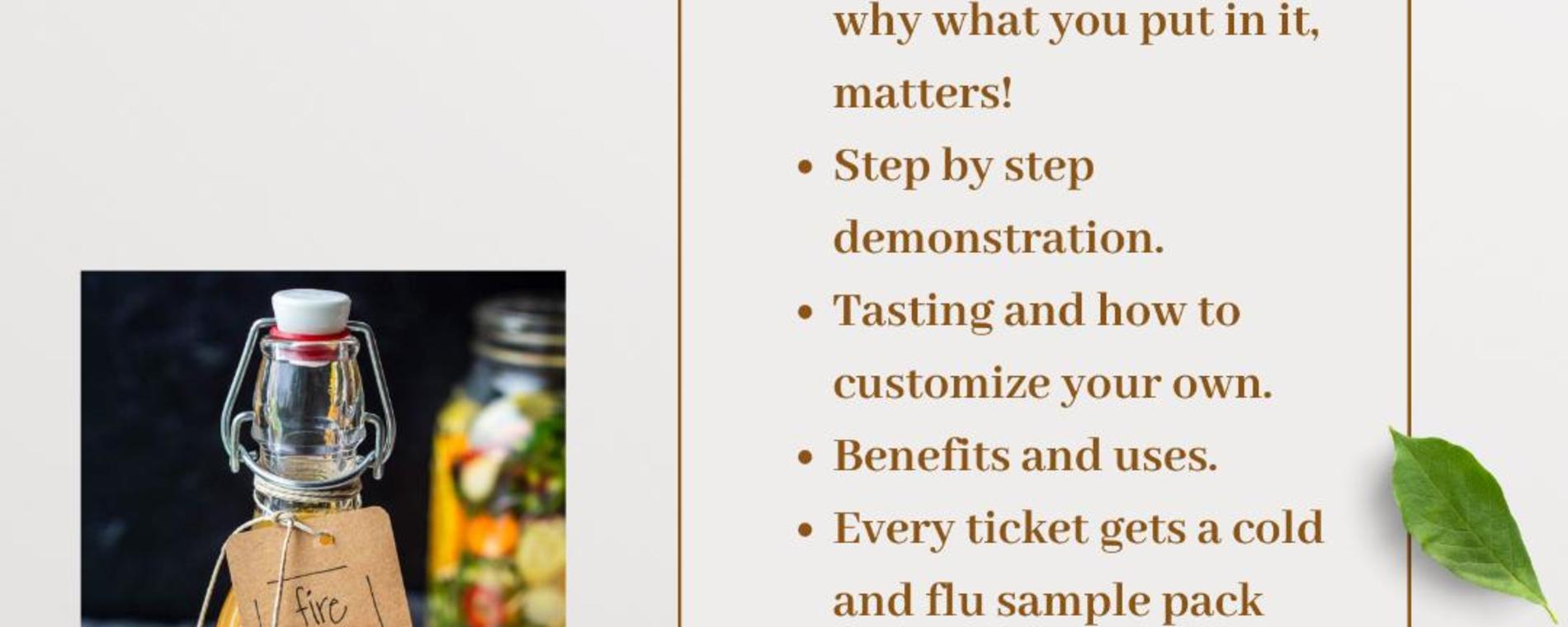 $10/Ticket - Ticket includes make & take Fire Cider + Cold and Flu Sample pack $0 - Browse products & chat with the Root & Leaf team