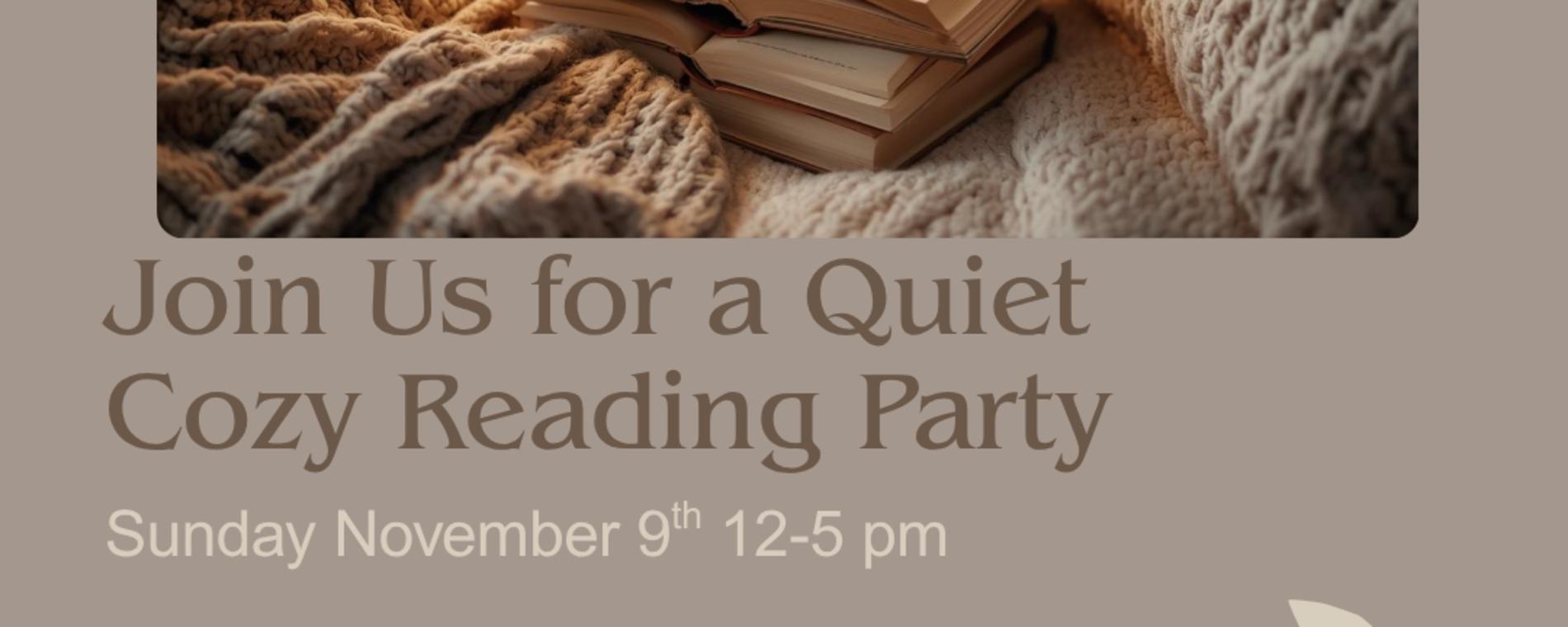 <p>Slow down, get cozy, and spend your Sunday afternoon exactly how you want: reading and enjoying a nice cider! Join us for a peaceful, no-pressure Quiet Cozy Reading Party where you can settle in, sip your favorite cider, and lose yourself in the pages.</p>