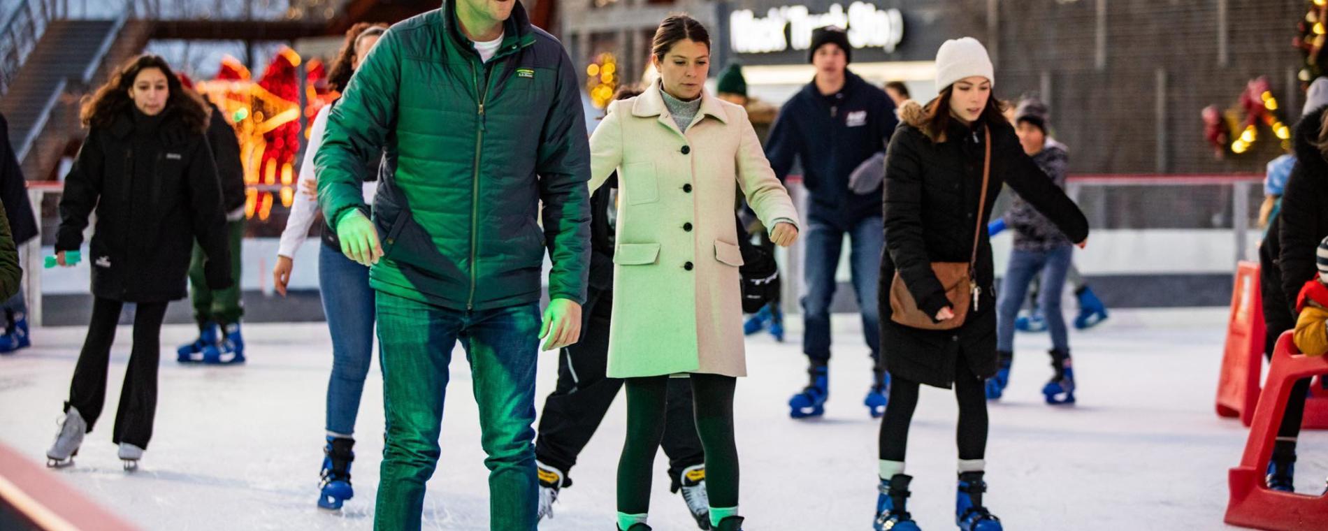 <p>Skate on a 60'x90' ice rink, flanked by a rotating slate of pop-up activations, seasonal food and drink and cozy gathering spaces. Skate with friends or family or book your holiday party.</p>