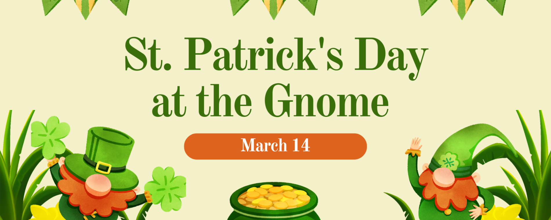 <p>We're celebrating St. Patrick's Day the Gnome way with rich, malty pours, a little Irish flair, and plenty of reasons to hang out awhile. We'll have Irish Red on tap, plus a special Irish Coffee Stout Firkin tapping at 3pm, available one day only! Come hungry too, because The Burnt End by Chef and Smoker will be here serving up food from 3-8pm. Grab a pint, toast to your Gnomies and celebrate St. Paddy's Day with us!</p>